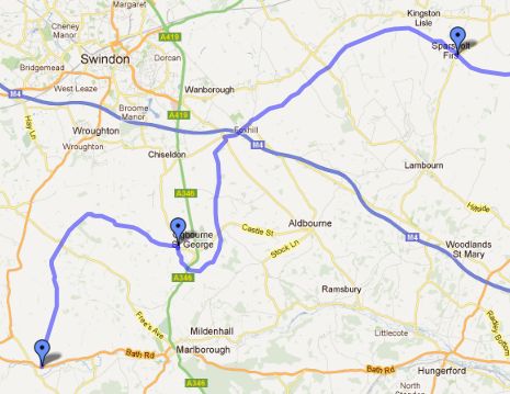 This above map shows the Ridgeway path. We will from Uffington Castle, which is just west of Kingston Lisle, to Avebury which is a little before and west of the final marker on the map. We will cut out the loop under Ogbourne St George as we are stopping for lunch and a sing at the Inn with the Well which is in Ogbourne St George itself.